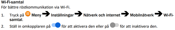 Notera att Wi-Fi samtal måste aktiveras manuellt även på denna enhet. Se instruktion nedan.